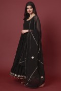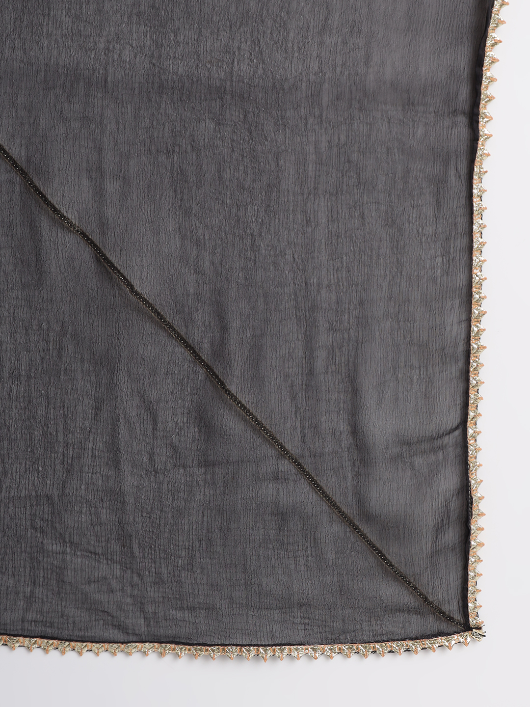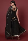 The Anarkali and its matching dupatta are richly adorned with exquisite Gotta Patti work, meticulously embroidered to catch the light and create a dazzling effect. Paired with tailored solid trousers, this ensemble presents a majestic, monochromatic look. Perfect for grand festivities, it’s a sophisticated blend of traditional artistry and high-end fashion, making a statement of understated luxury.