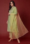 Elegant Chanderi Embroidered Kurta with Trousers and Dupatta