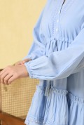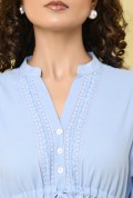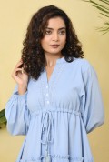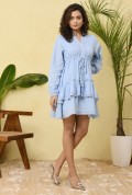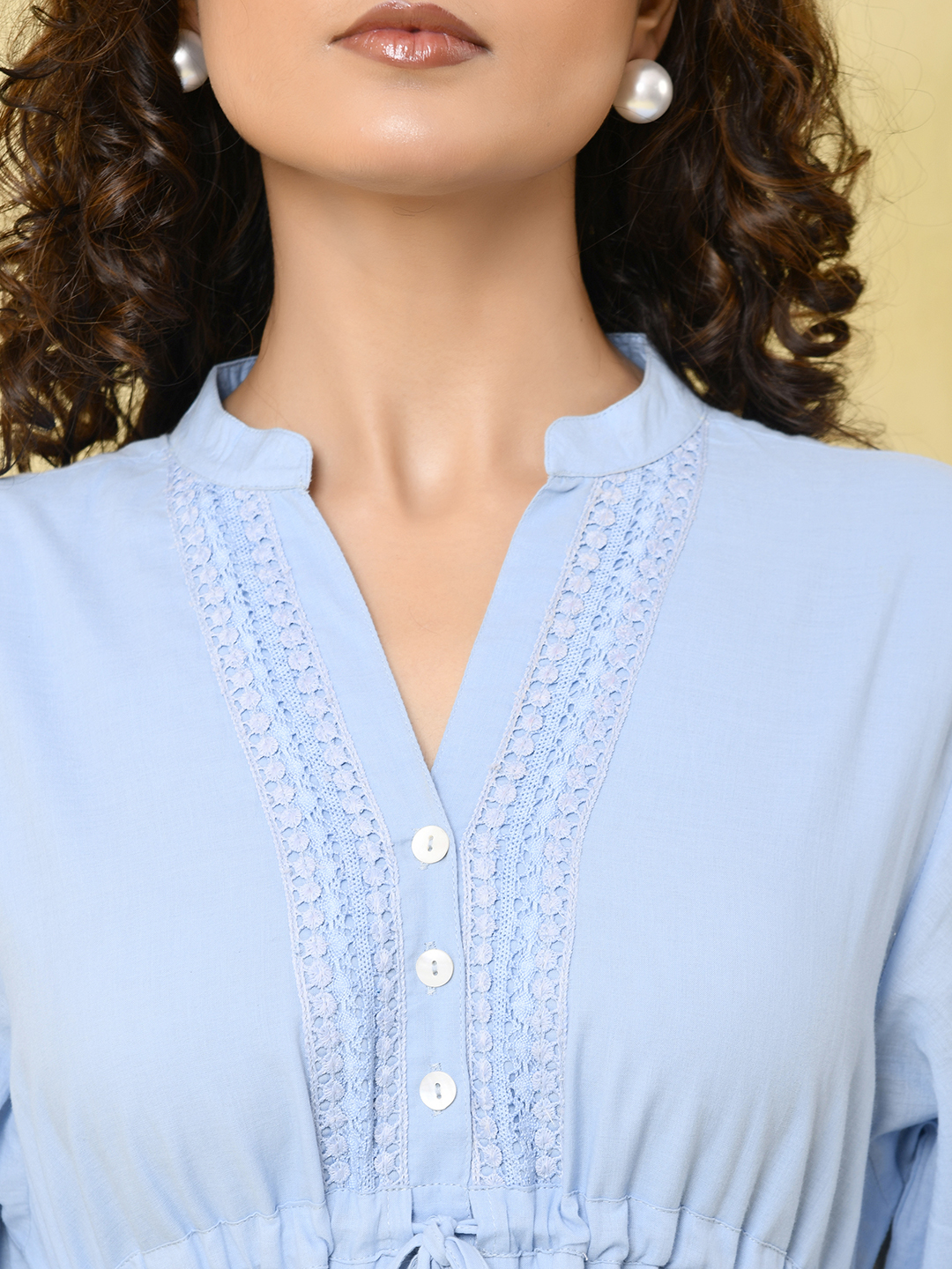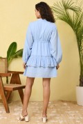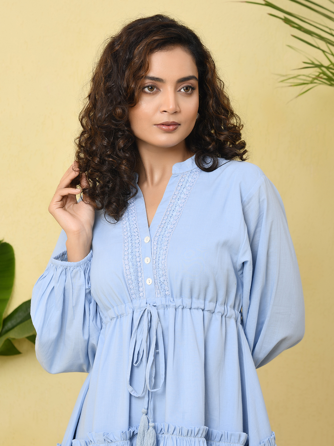 This bold and beautiful short dress features intricate lace embellishment that adds a touch of elegance and statement charm. Designed with full sleeves and comfortable elastic fitting at the wrists, it offers a refined yet stylish look. The dress flows into a soft, graceful flare that enhances movement and creates a flattering silhouette. Crafted for confidence and modern appeal, this piece blends bold design with delicate detailing—perfect for special outings, celebrations, and standout moments