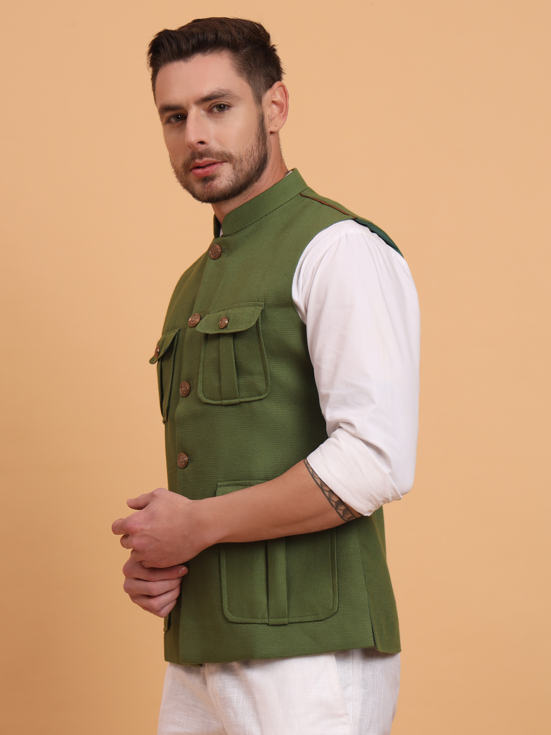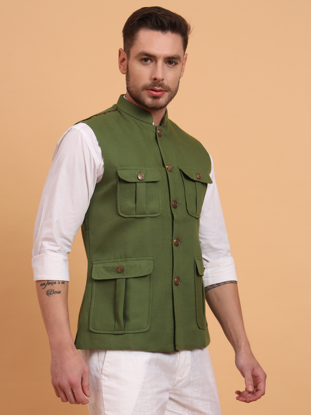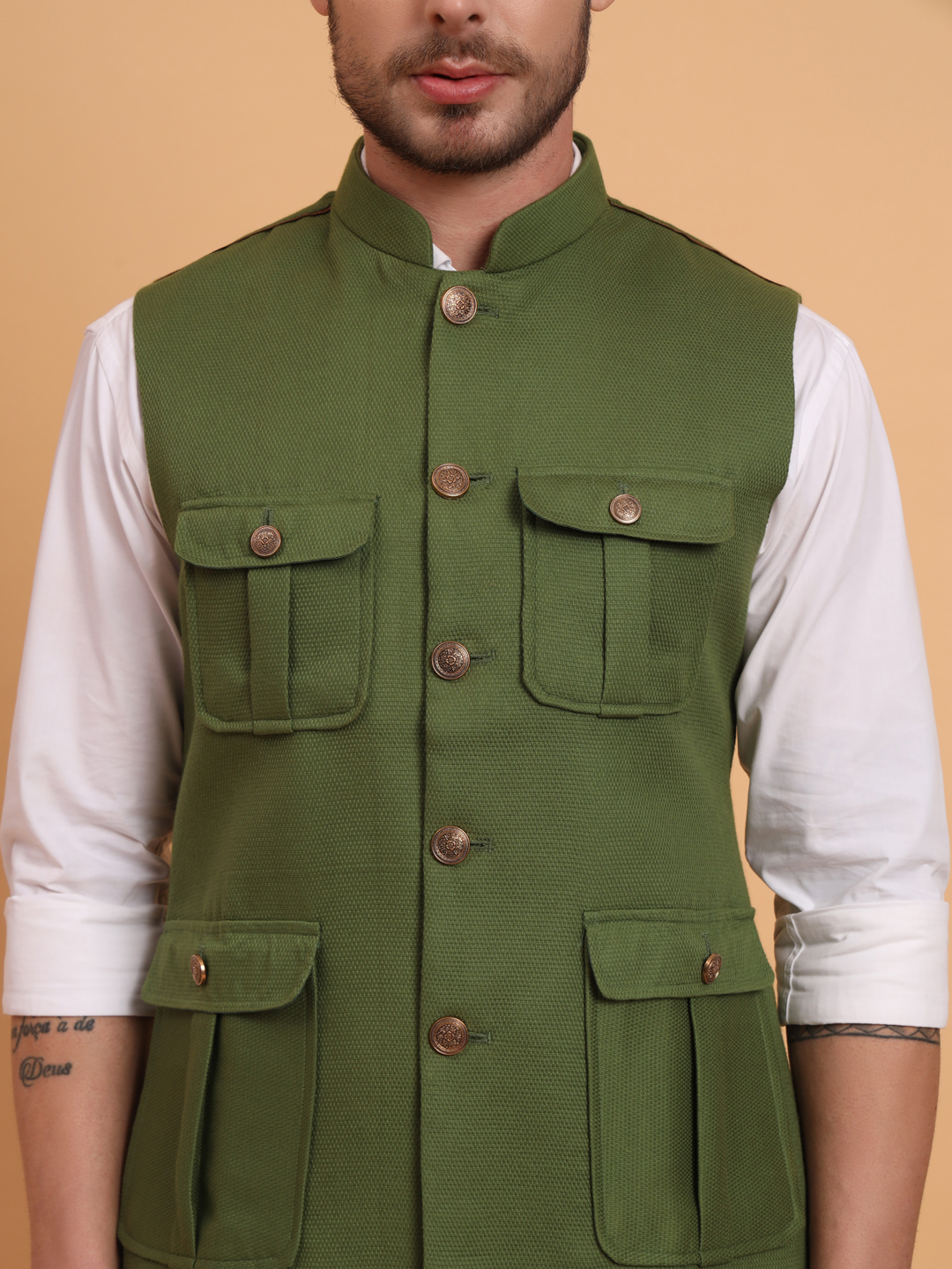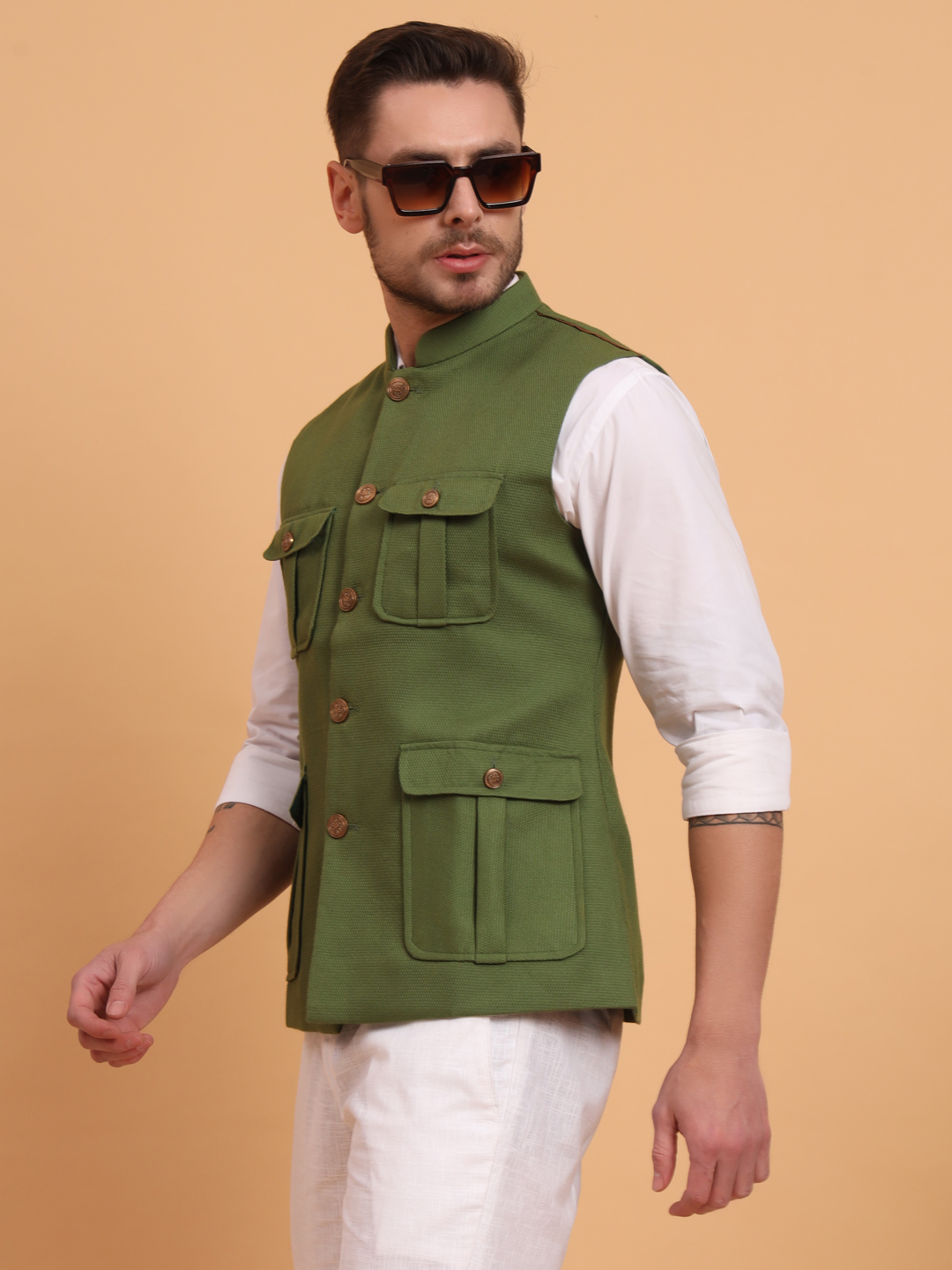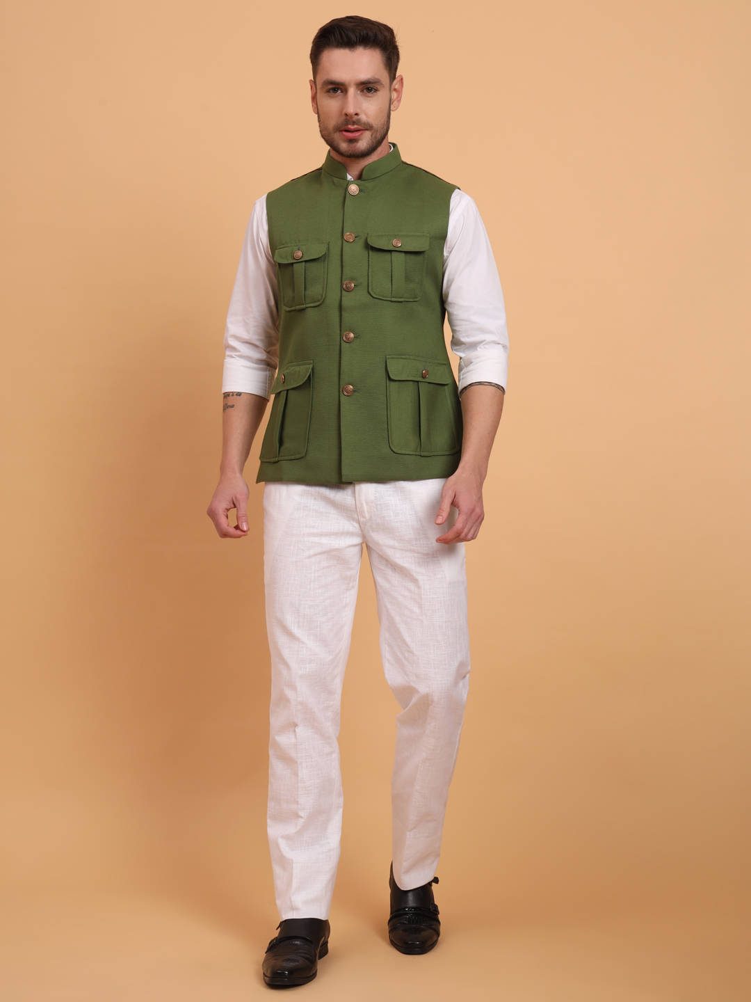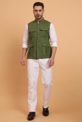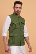 Inspired by timeless Indian royalty, this royal hunter jacket blends traditional craftsmanship with a modern, tailored silhouette. Designed with four functional front pockets and a refined back slit cut, it exudes sophistication and versatility. The structured fit and meticulous detailing make it ideal for festive occasions, formal gatherings, or elegant evenings. Its regal essence lies in the fusion of heritage-inspired design and contemporary aesthetics. Pair it with classic trousers or tailored pants for an effortlessly commanding look that embodies confidence, culture, and refined masculinity.