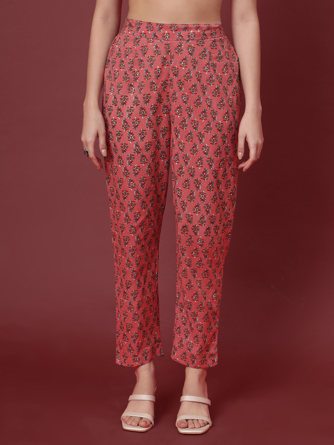 The Anarkali and its sheer dupatta are intricately embellished with dazzling Gotta work, meticulously applied to highlight the garment’s elegance and capture the light. Paired with comfortable, printed trousers, this ensemble flawlessly fuses traditional craftsmanship with contemporary style. It is the perfect choice for festive occasions, ensuring a regal and sophisticated statement. Experience opulent comfort and radiant artistry.